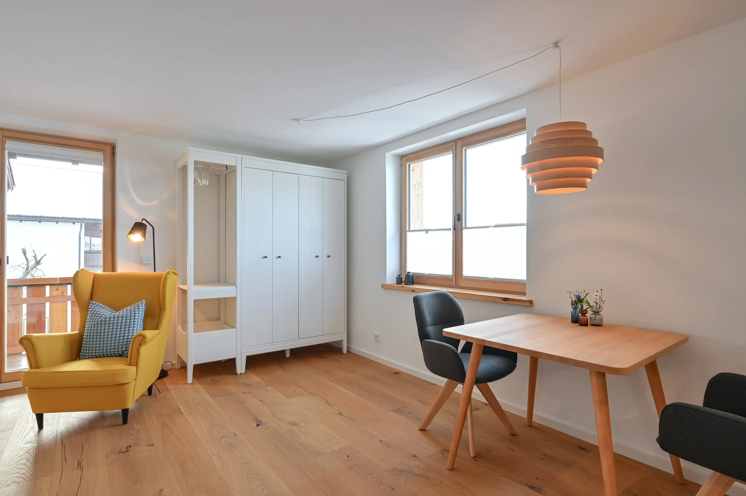 Kompakt, durchdacht und mit allem ausgestattet, was Sie brauchen. Ein großer Südbalkon lädt zum Entspannen mit Blick auf die Berge ein.